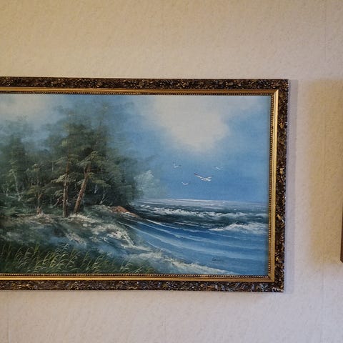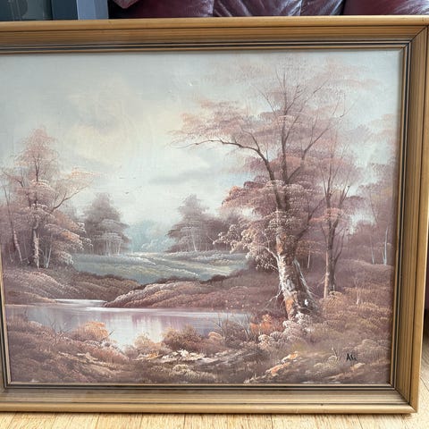 Kaunis vanha taulu. Kehysten ulkomitat 480x585.