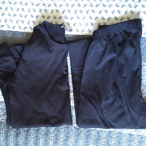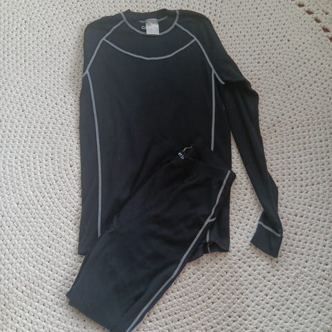 Tyylikkäännäköinen tekninen musta kerrasto, koko S. Hyvä esimerkiksi urheilussa, koska siirtää hien pois iholta.