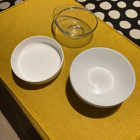 Ikea isolasikulho, korkeus 15 cm ja halkaisija ylhäältä 27 cm. Hieman on käytönjälkiä ja yhdessä on ”puhallus nyppylä”. Näitä löytyy 3 kpl. Hinta 2€/kpl tai kaikki kolme 5€.