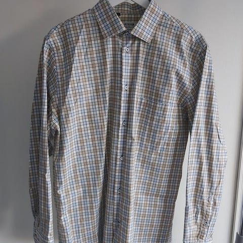 Miesten puuvillapaita, kokomerkintä B 40 eli vastaa kokoa M. Kaulus 39-40cm.