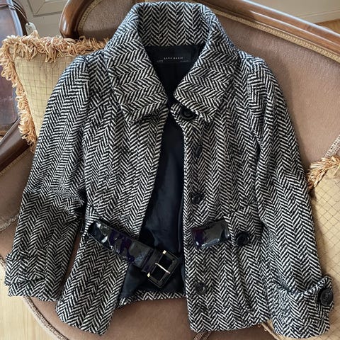Uusi (laput kiinni) Zaran takki, koko xs-s, vastaa kokoa 36. Juuttikangasta.