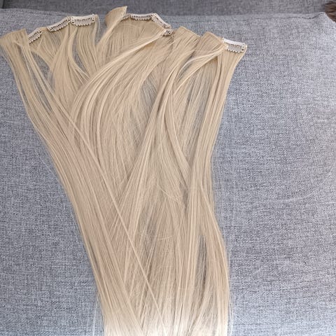 Setissä on 8 teippiparia&clipsuja, osa leikattu tukan kerrostusta varten, niinkuin kuvassa näkyy