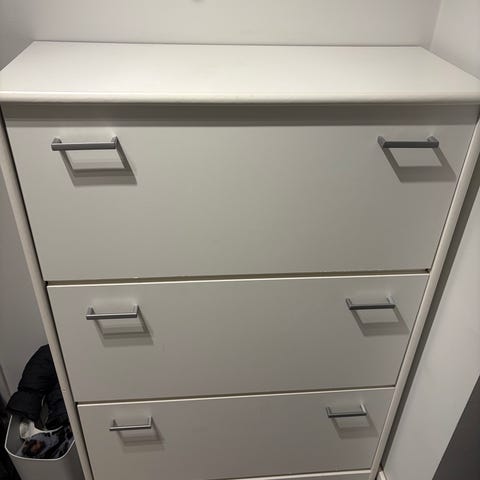 Ikea bissa mustanruskea kenkäkaappi. 3 lokeroa. Ostettu noin 6kk uutena, myydään muuton vuoksi pois.