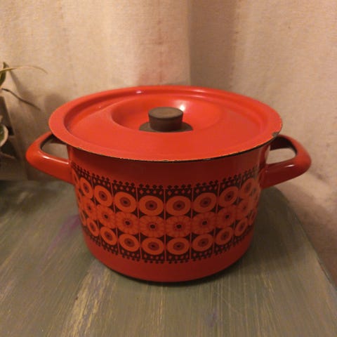 Finellin kehrä kasari. Aitoa retroa 60-luvulta. Kunto kuvien mukainen. Kahva vähän heiluu, eli ruuvia pitäisi kiristää. Tilavuus noin 2l.