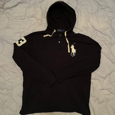 Ralph Lauren sininen miesten huppari, koko lasten xl, aikuisten S, valmistettu puuvillasta. Hupparissa on vetoketju ja pitkähihaiset hihat.