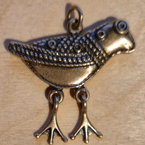 Isompi koko Hattulan lintu kaulakoru pronssi. Erinomainen kunto. Leimat Made in Finland, kk. Pronssinen riipus. Kalevala koru.
