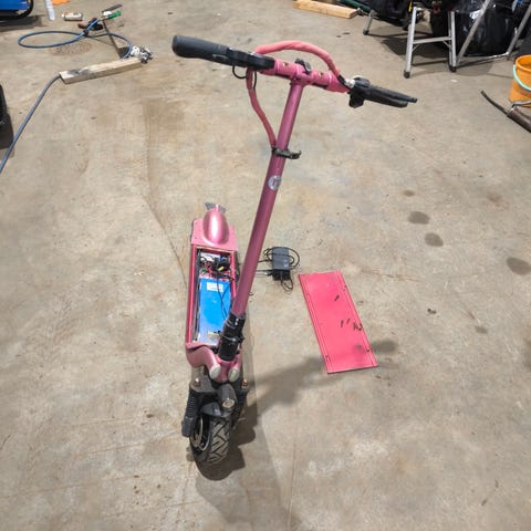 Sähköpotkulauta osat ja tarvikkeet eri komponentteja sisältäen ohjaustangon, moottorin ja muita mekaanisia osia. Sopii sähköpotkulaudan korjaukseen tai rakentamiseen.