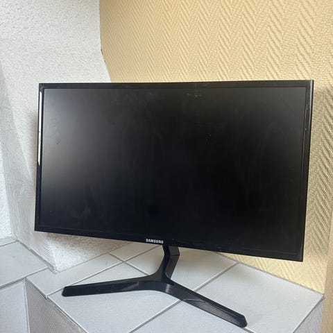 Hyväkuntoinen näyttö, esim. Pöytään helposti kiinnitettävällä liikkuvalla jalalla