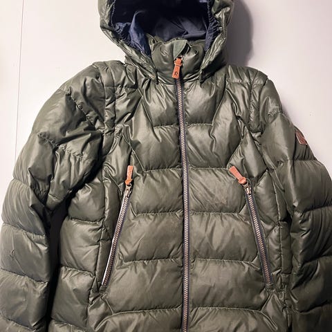 Untuva/ höyhentäyte.. Takissa on vetoketjukiinnitys ja kaksi etutaskua, joissa tarrakiinnitys. Soveltuu pojille ja tytöille