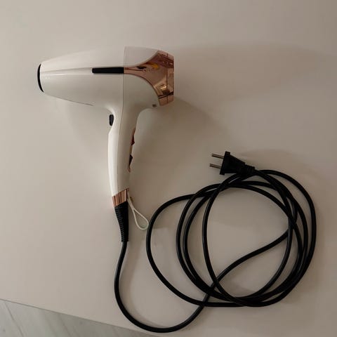 Ghd hiustenkuivain. Käytetty jonkinverran, kunto kuitenkin hyvä.
