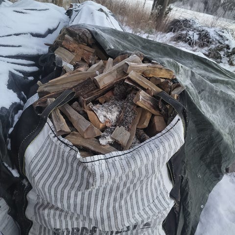 Lisäksi löytyy noin kuution säkkejä neljällä nosto korvalla jotka sopivat klapien säilytykseen (ei kuvia), näissä ei ole verkko kangasta ja hintaa näillä 5 euroa/kpl.