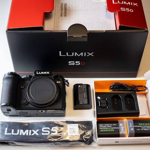 Mukaan tulee lisä akku, laturi, SD-muistikortteja ja lähes uusi kamerakotelo.