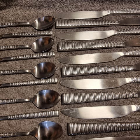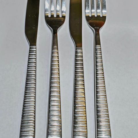 Myydään kuvan mukaiset Ristomatti Ratian Spin-aterimet. Sisältää veitsen 22,5cm ja haarukan 21cm. Myynnissä kaksi settiä. Yksi setti 10e kaksi settiä 16e.