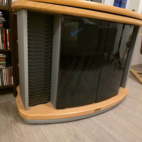 Todella upeassa kunnossa oleva Philipsin stereoille suunniteltu laitekaappi. Alaosassa tilaa vinyylilevyille.