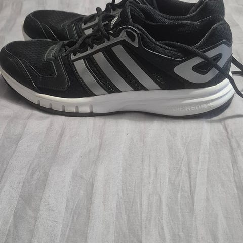 Adidas juoksukengät koko 43, musta väri. Soveltuvat juoksuun ja urheilukäyttöön. Nilkkamallinen malli, jossa hengittävä päällinen ja vaimennettu pohja.