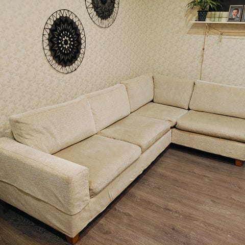Nyt myynnissä/huutokaupassa hyvä kulmasohva. Paras tarjous lauantaihin kello 12 voittaa.