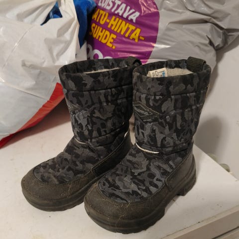 Kuoma lasten talvikengät, koko 26, musta väri, unisex-malli. Kengät on suunniteltu lapsille ja ne tarjoavat suojaa kylmissä olosuhteissa.