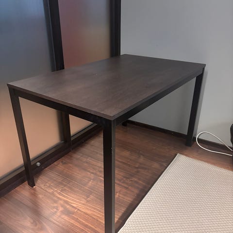 Teräsrunkoisen Ikea Vangsta -pöydän ääreen mahtuu jatkopalan kanssa jopa kahdeksan ihmistä kun päätypaikat ottaa käyttöön. Pöydän kannen alle piiloon sujahtava pidennyslevy on äärimmäisen kätevä siirreltävä.