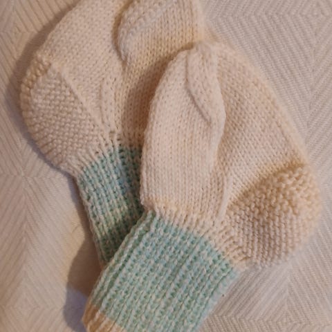 Lämpimin ajatuksin neulotut vihreät villasukat pieniin jalkoihin, pohjan pituus 13 cm. Hinta 10 e + postimaksu 2,75 e. Lähetän sukat sinulle, voit maksaa tililleni saatuasi ne.