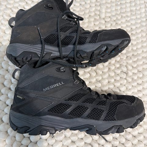 Merrell talvikengät, koko 42, musta väri. Kengät soveltuvat talvikäyttöön ja tarjoavat suojaa kylmiltä olosuhteilta.