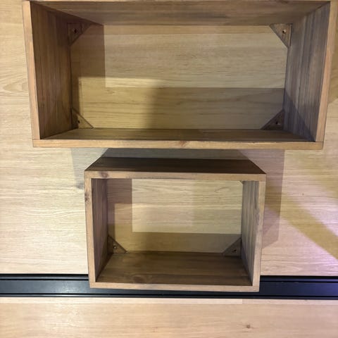 Hyväkuntoinen valkoinen hylly tasoilla