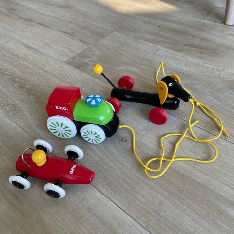 BRIO leluja, erilaisia 6kpl. Kuvasta poiketen hevonen puuttui tuosta traktorin kärryn päältä, sekin on tallessa. Eli: lentokoneita 2kpl, traktori kärryllä, koira, formula, palikkalaatikko. Voin myydä myös erikseen jos tarve. Mielellään haku turusta.