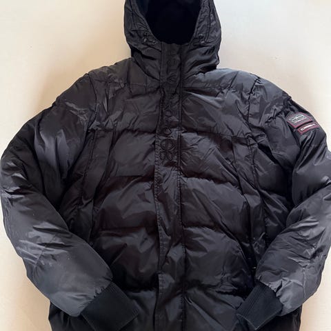 Talvitakki, siisti ja hyväkuntoinen. Monta vetoketjullista taskua. Sisältä Yläosa villaa ja ackryl. Alaosa tikkikangasta. Eläintalous. Haku tai postitus