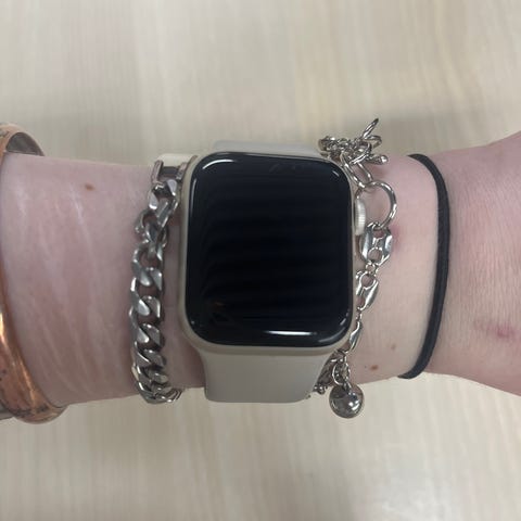Apple Watch Series 4 älykello, jossa valkoinen silikoninen ranneke.
