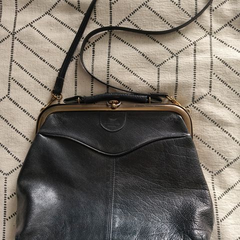 Natevan kotimainen vintage nahkainen naisten olkalaukku tummasininen. Koko 15x20x6 cm, säädettävä olkahihna
