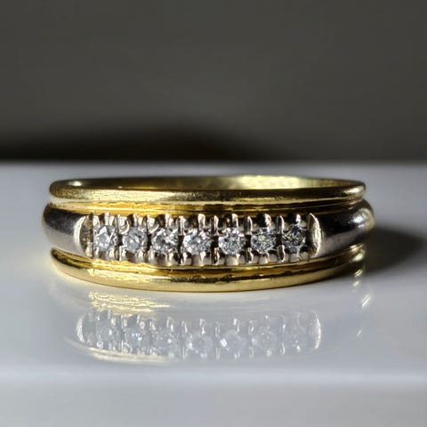 Kultainen timanttisormus 18k, 750, koko: 18 , 7 timanttia ( 7 x 0.02 ct ),