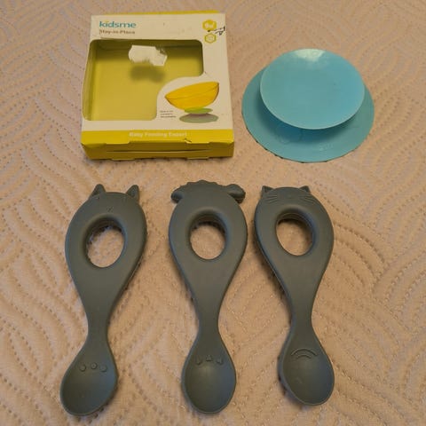 Kidsme vihreä imukuppi, joka soveltuu esimerkiksi lasten astioiden tai lelujen kiinnittämiseen tasaisille pinnoille.