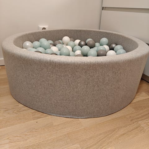 Myydään JLY pallomeri ja pussillinen palloja. Väri light beige. Kankaassa muutamia tahroja tullut leikeistä, ei ole yritetty pestä. Lisäksi ollut säilytyksessä vaatehuoneessa jätesäkissä, joten muoto vähän kulmikas. Mahdollinen pesu jää ostajalle.