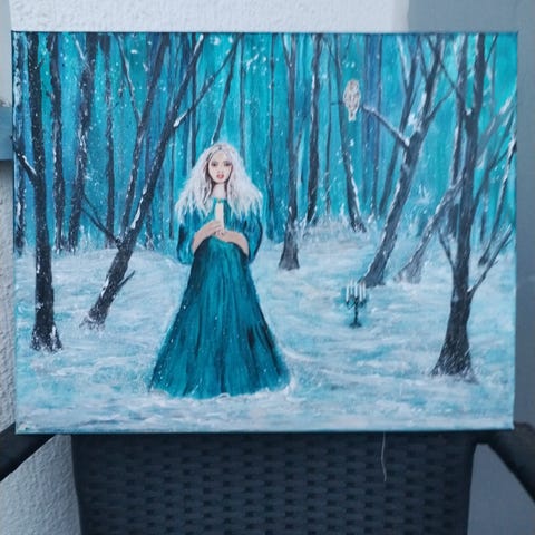 Akryylimaalaus canvas-pohjaan. Koko noin 40 x 50. Postitus mahdollinen ja kulkeutuu myös Raahesta moneen suuntaan reissuilla. Kysele.