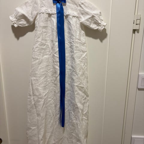 Käyttämätön kastemekko, kasteliina ja kastenauha rusetilla.