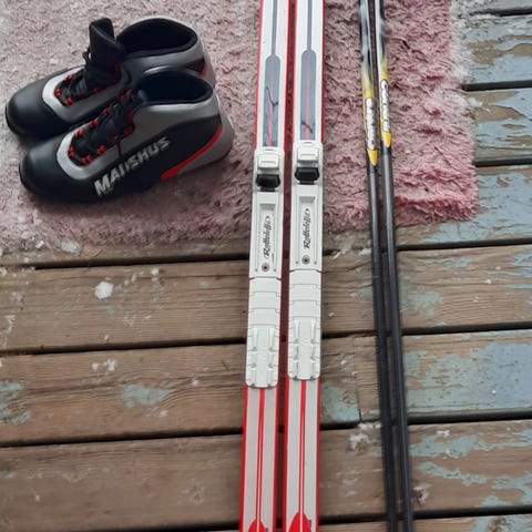 Suksipaketti 150 cm sukset, sauvat ja monot