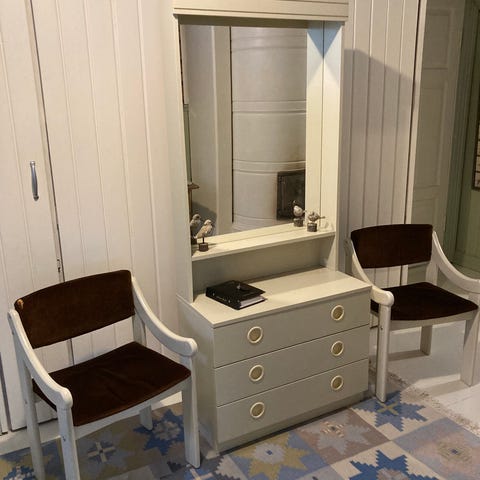 Vanha peilipiironki ootratulla pinnalla. Alkuperäisellä peilillä ja näyttävillä koho koristeilla.