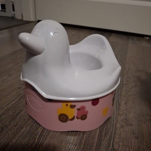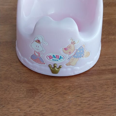 Baby Born nuken potta. Ehjä on, mutta leikityssä kunnossa. Löytyy siis naarmua ja tahraa, mutta hyvin ajaa edelleen asiansa. Koitan isoimmat tahrat putsailla pois, mutta tarkempi pesu jää ostajalle.