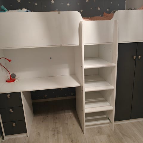 Myydään parvisänky, jossa alhaalla työtaso sekä levitettävä lisävuode. Sänky on vähän käytetty, kunnoltaan kuin uusi. Sänky on mahdollista purkaa pienempiin osiin kuljetusta varten, purku ostajan vastuulla.