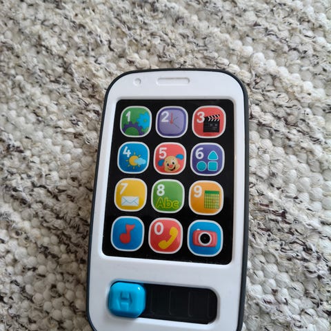 Fisher-Price Laugh & Learn lasten leikkiälypuhelin. Suomenkielinen laulu ja puhe, myös musiikkia ja valoja. Ehjä ja toimiva, mutta naarmuja ja muuta käytönjälkeä löytyy. Koitan isoimmat tahrat putsailla pois, mutta tarkempi pesu jää ostajalle.