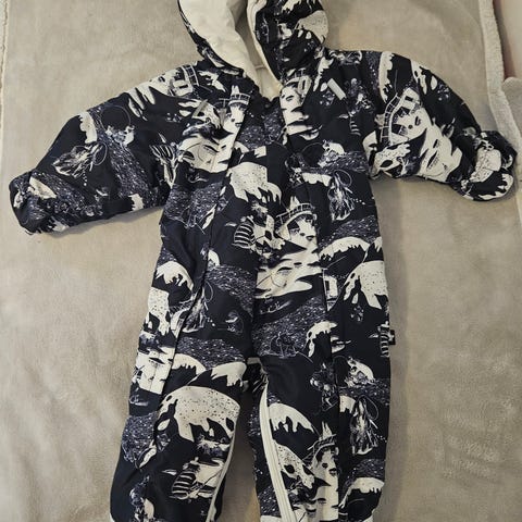 Reiman lämmin nallekuosillinen vauvan talvihaalari, jonka alaosan saa vetoketjuilla helposti myös pussiksi. Hihat saa käännettyä tumpuiksi ja lahkeet neppareilla pussiksi.
