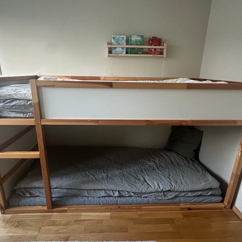 Pari vuotta vanha. Säleiköt sänkyyn myös saa mukaan. Patjat ei. Vain nouto . Kokoamisohje löytyy ikean sivuilta.