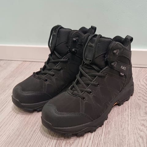 Halti naisten vedenkestävät goretex talvikengät. Sopivat myös ympärivuotiseen käyttöön. Koko 38, sisämitta n. 25,5 cm. Pyöreät kärjet, normaali lesti. Pääväri musta ja muu väritys liila. Mukana heijastavia yksityiskohtia. Hyvässä käytetyssä kunnossa: ehjät, puhtaat, hajuttomat ja ryhdikkäät. Pientä pintakulumaa on kuitenkin paikoitellen. Pohjissa ei selkeitä kulumakohtia. Irroitettavat sisäpohjalliset eivät ole koskaan olleet käytössä, vaan olen käyttänyt muita pohjallisia tilalla.