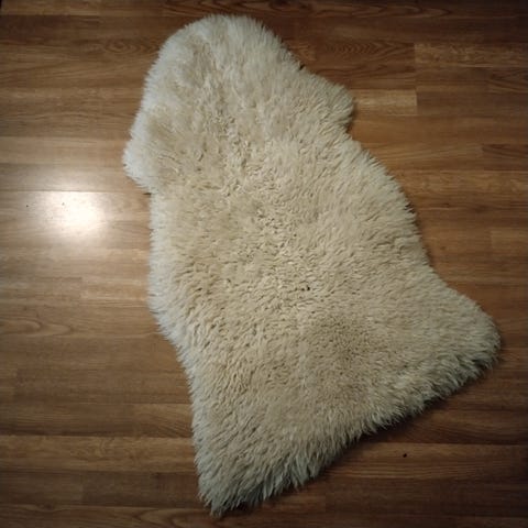 Hyväkuntoinen lampaantalja esim. pehmusteeksi pulkkaan, rattaisiin tai vaunuihin. Voidaan käyttää myös kodin sisustamisessa.