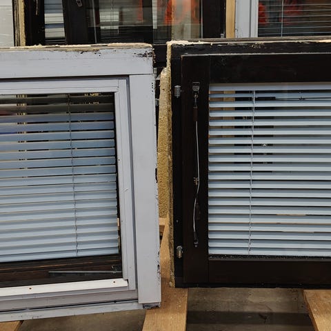 Myydään 6x9 kokoisia ikkunoita 3lasia karmi 170mm ja sälekaitimet. Valkoisia ulkoa ja ruskeita sisältä.