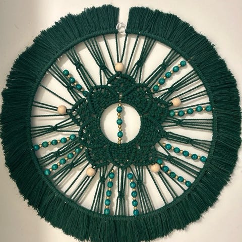 Makramee amppeli punainen ja valkoinen