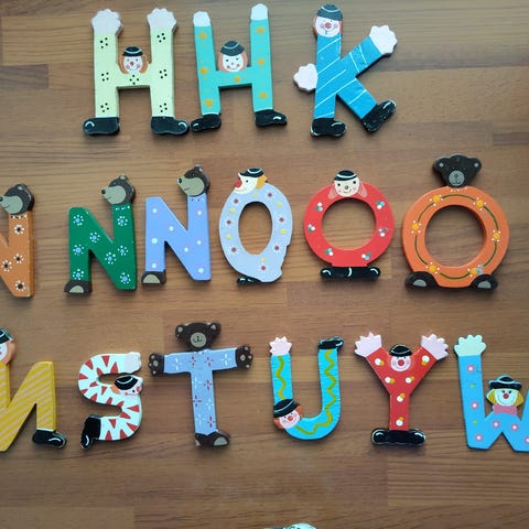 Erittäin hyvässä kunnossa olevat , Sevin puiset kirjaimet. Maalattu hauskoilla kuvilla