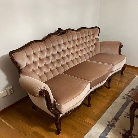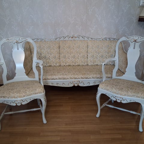 Hyväkuntoinen, hyvin pidetty suomalainen talonpoikaisrokokoo sohvaryhmä