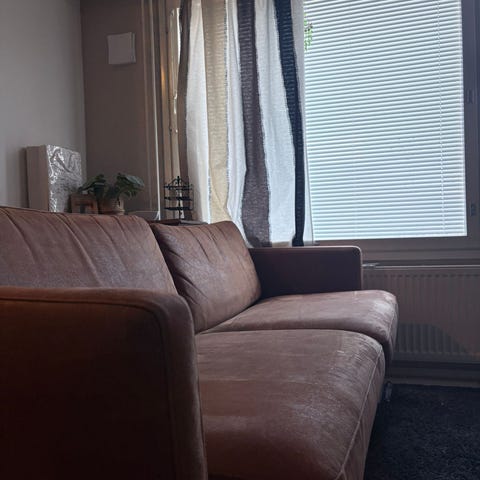 Maskun sohva. Päällisin puolin ehjä, istuintyynyjen alla kaks isohkoa reikää kankaassa,ei haittaa käyttöä eikä näy mihinkään. Selkätyynyjen alta kangas nukkaantunut. Molemmat näkyy kuvissa. Hyvä istua ja maata. Päälliset saa pestyä. Nouto kärjestä,nopein nouto etusijalla. En varaa montaa päivää, saatava pois uuden sohvan alta. Kantoapua saa miehen ollessa kotona.