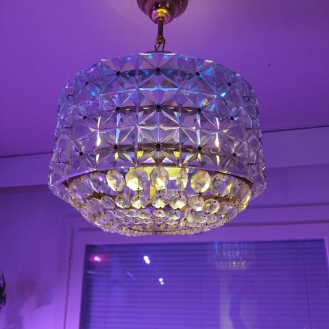 Reality Leuchten hopean värinen kattokruunu. Kruunusta saattaa puuttua muutamia ”kristalleja”.