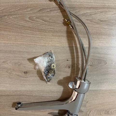 2,5v käytössä ollut musta Granan keittiönhana astianpesukoneliitännällä.